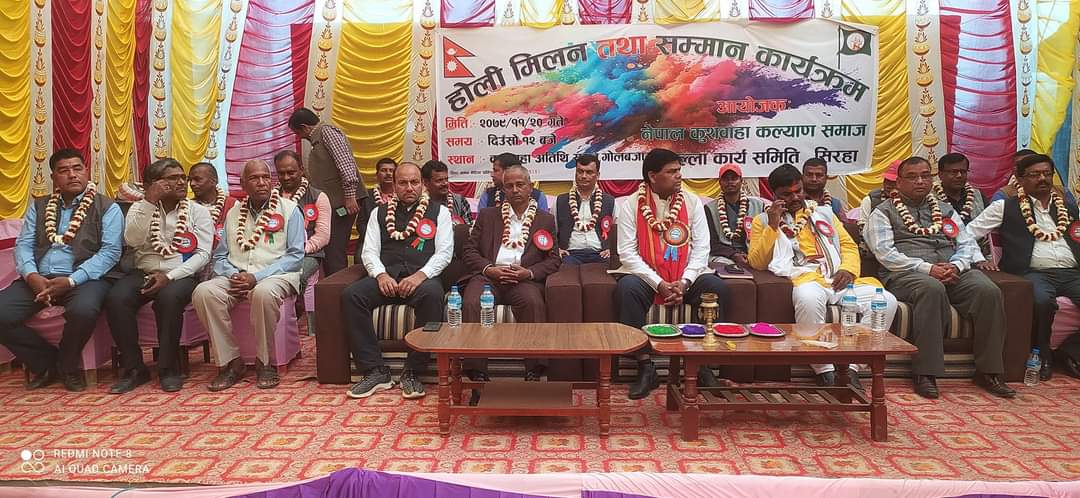 मिती २०७९ फाल्गुन २० गते सम्पूर्ण समुदायका गण्य मान्य राजनिती ,वौद्धिक तथा दाताहरुसंगको होली मिलन कार्यक्रम